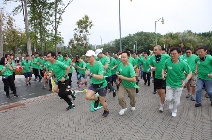 9:30,發令槍響,中國金茂深圳公司總經理李斌宣布開跑,摩肩擦踵的參賽選手已將現場變成了跑步愛好者的歡樂海洋,圍觀的路人也紛紛加入綠跑行列,共同體驗綠跑帶來的快樂與健康。