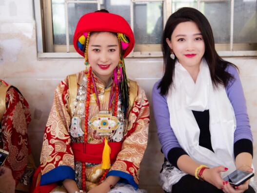 香港商报记者小美静与锅庄舞蹈者此里拉姆合影