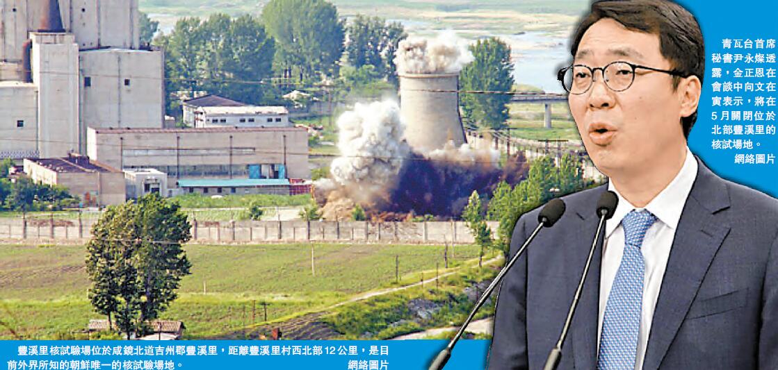 【香港商報网訊】韓國青瓦台負責與民溝通的首席秘書尹永燦昨天透露,朝鮮領導人金正恩27日與韓國總統文在寅於會談中表示,將在5月關閉位於北部豐溪里的核試場地,到時還會邀請韓美傳媒和專家到場,確保過程公開透明。對此,文在寅隨即表示歡迎。金正恩又指,外界稱朝鮮廢棄的是無法使用的核試場地,但實際上有兩條比之前更大的坑道,且狀況十分良好。