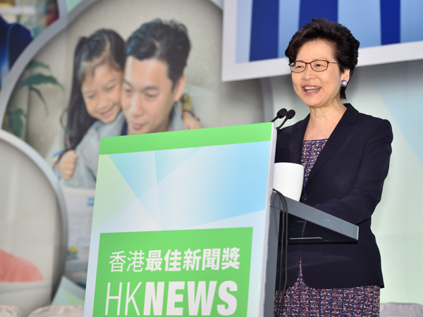 林鄭月娥指出,作為特區政府的主要官員,出席最佳新聞獎的活動有三重意義。第一個意義是感謝和恭賀,感謝香港報業公會多年來堅持舉辦這個活動,恭賀10多個分類項目的得獎新聞從業員。