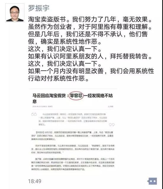 罗振宇强调,如果淘宝一个月内没有明显改善,我们会用系统性行动对付系统性作恶。