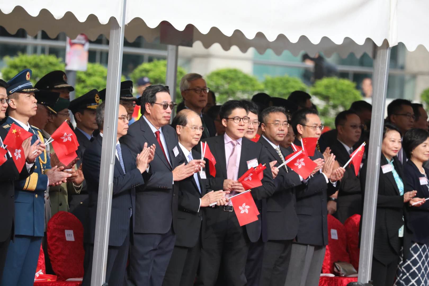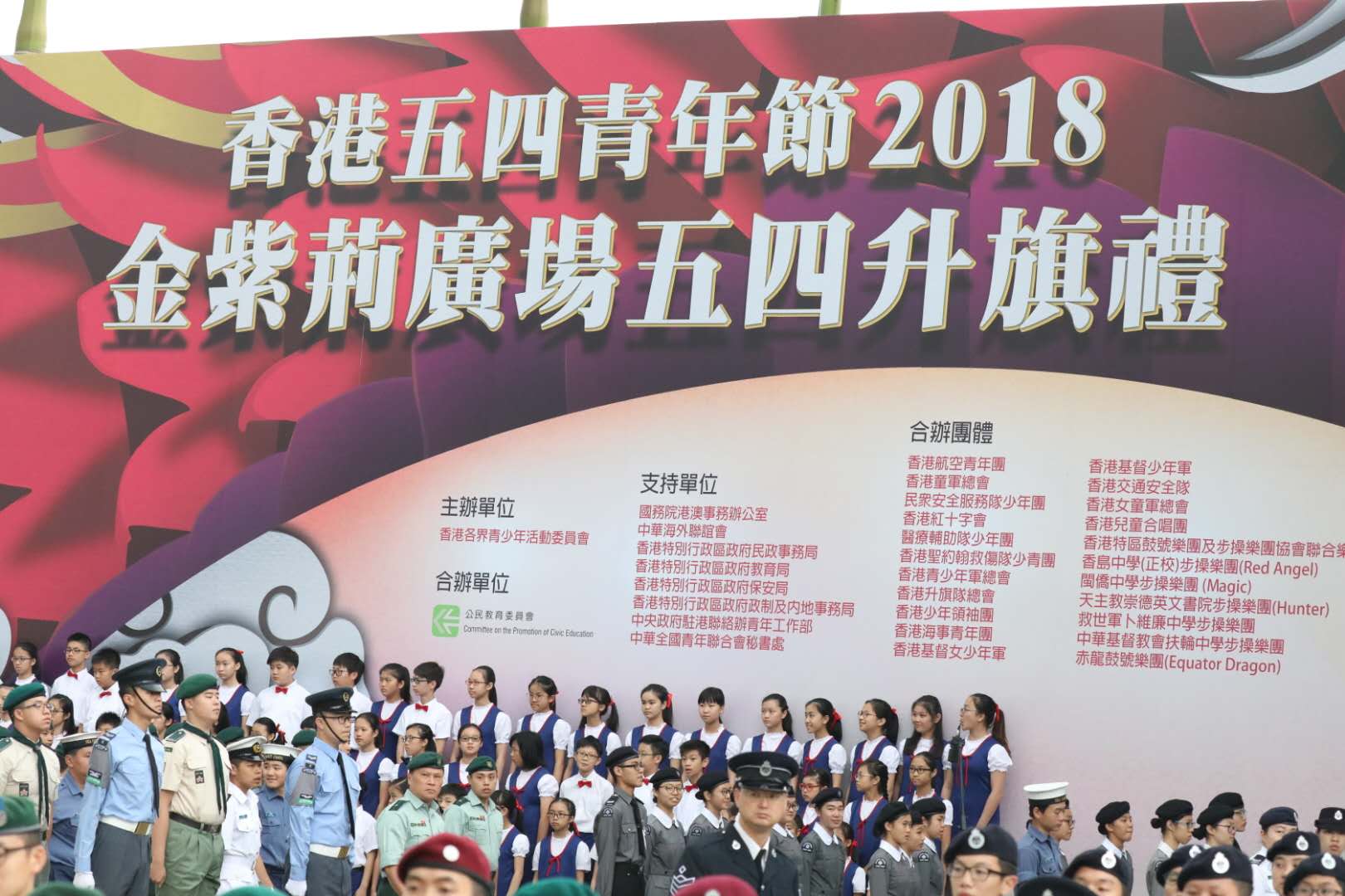 【香港商报网讯】记者刘深报道:为纪念五四运动99周年,由香港各界青少年活动委员会举办的「香港五四青年节金紫荆广场五四升旗礼」今早举行。现场有14个青少年制服团体到场参加,政务司司长张建宗、中联办副主任陈冬、立法会主席梁君彦等、香港各界青少年活动委员会执行主席霍启刚等担任主礼嘉宾
