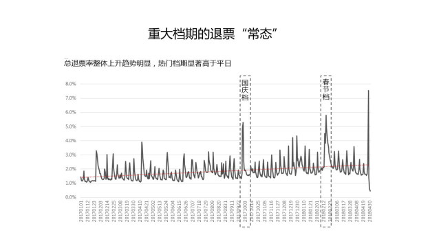 对于高退票率这一事实,康利并不否认,但他同时强调,“重要档期的首日,退票和改签比例的高起应该是一个常态,只不过这次可能比历史上更多了一些”。
