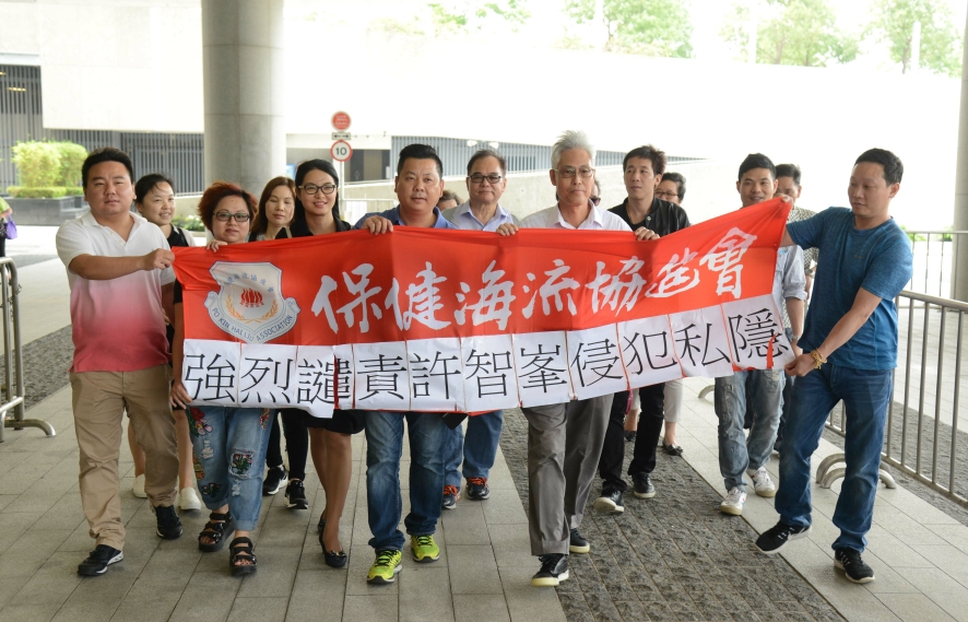 保健海流協進會請願,譴責許智峯侵犯私隱。 記者 崔俊良攝