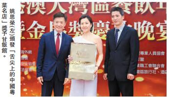 【香港商報网訊】記者余江強報道:粵港澳大灣區餐飲年會主辦金馬獎慶功晚宴,日前假荃灣半島漁港舉行,主禮嘉賓有立法會旅游業界議員姚思榮,亞太酒店協會主席冼鋒,中聯辦協調部處長張權、副處長陳隆秀,聯合國開發計劃署官員亞太地區代表林家強等,先后為第18屆中國飯店金馬獎得獎的個人、餐飲機構、供應商頒發獎項。來自粵港澳三地的300多位餐飲同業共聚一堂,同申慶賀,場面熱鬧。