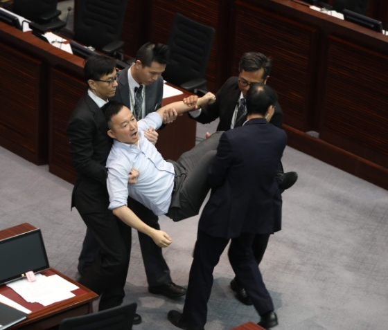 陳志全被保安人员抬走。