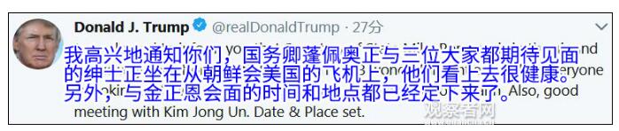 5月9日,美国总统特朗普通过自己的推特账号向全世界发布了上述消息: