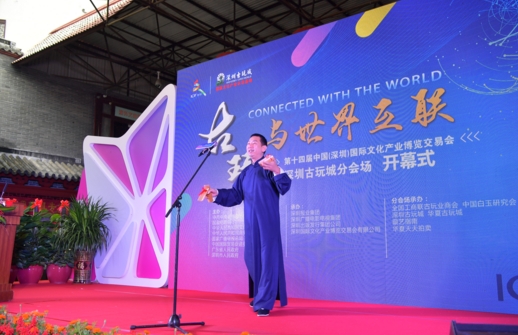 【香港商报网讯】记者易小婧通讯员於卢娟报道:9日, 第十四届文博会深圳古玩城分会场开幕仪式在深圳古玩城隆重举行,罗湖区委书记贺海涛、罗湖区人民政府副区长文忠、罗湖区黄贝街道办事处党工委书记、办事处主任陈苇、罗湖区人大黄贝联组人大代表、罗湖区黄贝街道商会企业家们以及保利文化、金融界、艺术界、收藏界、古玩行业协会、中华古玩城大联盟、媒体朋友共计300余人参加了开幕式。深圳古玩城副董事长卓杰在开幕仪式上致欢迎词:“深圳古玩城与文博会共同成长,在传承和弘扬传统文化的道路上不忘初心,砥砺前行,本届文博会以古玩与世界互联为主题,是希望本着开放、包容的心态,推动中华文化与世界的交流融合,并在多元文化融合的同时保留属于我们自己的文化。”