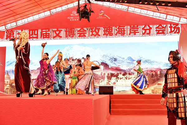【香港商報网訊】記者朱開芝、黃鳳鳴、余麗齡 通訊員田耀中、馮海濱報道:一場以「融」為主題的中西式婚俗在文博會玫瑰海岸分會場上演,開幕式濃墨重彩地展現中國傳統婚俗文化的更迭與融合,以及中西方婚俗文化的交融。