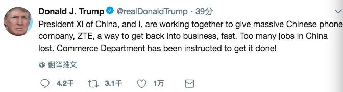 经贸伙伴们不能提心吊胆地同美国做生意、搞合作,美国应当让那些伙伴安心、放心。我们期待,特朗普总统的上述推文所说的决定能够无条件的快速落实,它不是美方在当前条件下抛出的又一筹码。中兴事件涉及的是信誉,而非别的什么。