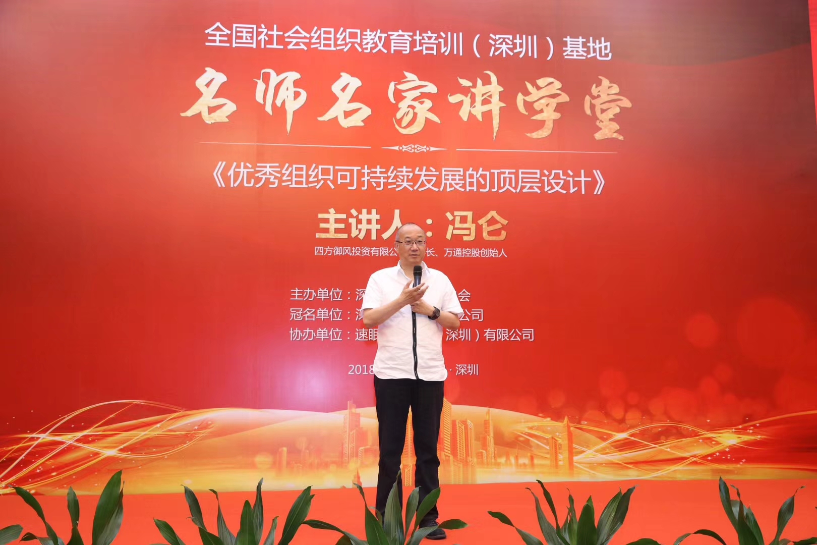 葛明执行会长在致辞中指出,党的十九大的召开为中国未来发展绘就了新蓝图,同时也为新时代下社会组织、企业提出了新的挑战,总会希望依托全国社会组织教育培训(深圳)基地“名师名家讲学堂”邀请国内外知名专家、学者、著名企业家、社会组织领军人物、著名社会活动家传授其独特的思想和智慧,为广大社会组织和企业提供学习的机会,同时也非常感谢冯仑董事长对总会及深圳社会组织工作的支持。