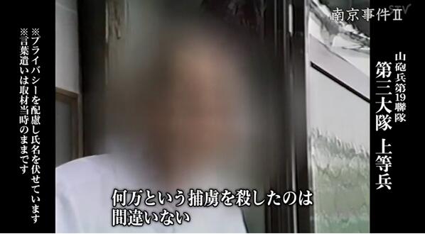 亲历者的证言第二种主张则强调,当时日方其实准备释放俘虏。但正当俘虏坐船试图横渡长江时,对岸响起了炮火声,日本兵处于自卫才开始射杀。节目组详细梳理了这种理论的源头,并确认了这一说法来自于当时步兵第65联队队长两角业作。通过仔细核对两角的日记和其他士兵的论述。制作组发现在屠杀当天,两角根本没有亲自到现场。而他所谓“释放俘虏”的说辞也只是战后的自我辩白。其历史效力远低于来自亲历者的一手资料。从而这种说法也完全站不住脚。