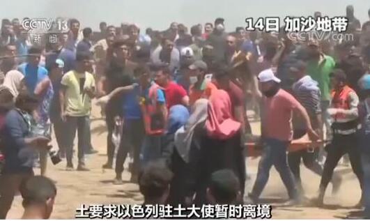 为抗议美国一意孤行将驻以色列使馆迁往耶路撒冷,巴勒斯坦民众举行大规模抗议示威,并与以色列士兵发生冲突,冲突造成大量巴勒斯坦民众伤亡。国际社会对以色列军队的暴行表示强烈谴责。继14日土耳其宣布召回土耳其驻美国和以色列大使后,15日,土耳其又要求以色列驻土耳其大使离开土耳其。