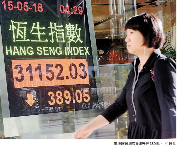 上周一雖隔晚美股全線反彈,惟港股走勢反覆,重磅股騰訊(700)續受沽壓之下,港股一度見前周低位29791點,全日雖仍收升67點報29994點,但依然再失守3萬關。上周二騰訊及中資金融股均回勇,港股成功反撲408點收報30402點,收復十天線。上周三美國宣布退出伊朗核協議,油股跟隨油價飛升,加上港交所(388)季績強勁,港股全日收升133點。騰訊上周四強勢重上400元關,亦收復大股東配售價(405元),帶動大市再上升273點,收報30809點。恒指上周五早市跟隨外圍高開342點報31151點,在友邦(1299)破頂領漲下,大市全日再升312點,恒指收報31122點,重上31000點,締造五連升。