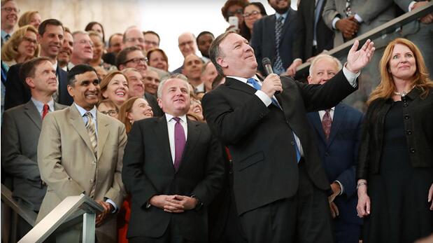 讲话中,蓬佩奥赞扬了美国在全球事务中的“本质正确”,敦促士气低落的美国外交官们在推动和执行特朗普外交政策时采取坚定、积极的行动。