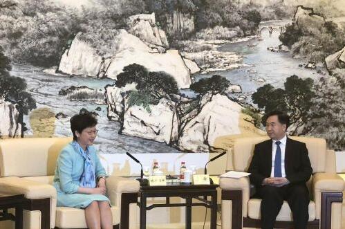 行政长官林郑月娥与广东省委书记李希会面。