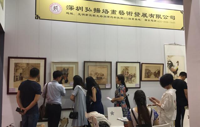 【香港商报网讯】记者黄凤鸣报道:第14届文博会上,深圳光明烙画在九号馆主通道旁展出了近40幅作品和烙画衍生小礼品,内容丰富多彩,有反应改革开放40年来的成果作品、也有反应祖国大好河山的、也有反应祖国繁荣兴旺的、也有不忘初心反应人民过上美好生活的等等。烙画也是中国非物文化遗产保护项目,至今2000多年历史。随着改革开放40年来的发展成果,烙画在工具和材质、技法上也取得了很大的发展。在第十四届文博会展览出的烙画《马到成功》作品获“金奖”、《高原秋》作品获“银奖”、《乡析之事》作品获“铜奖”。