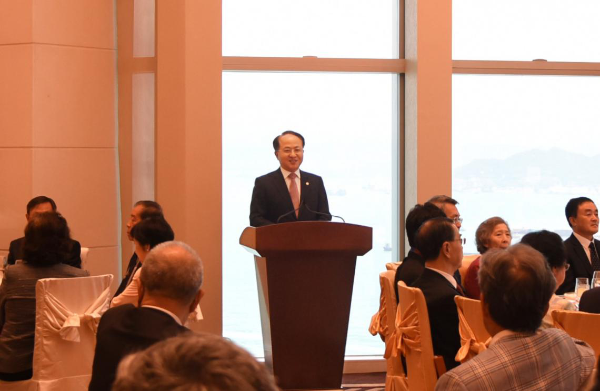 5月20日中午,王志民主任在餐叙座谈时致辞。(图片来源:中央政府驻港联络办)