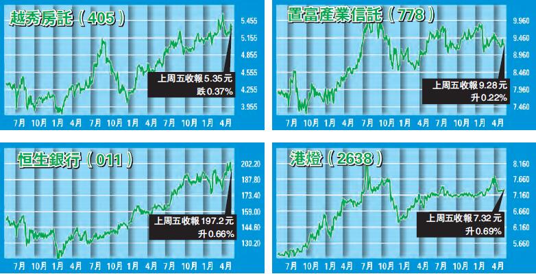 除了REITs外,有些大型股也值得留意,如恒生銀行,因為步入加息周期,銀行股的收入可望提升,所以恒生股價表現不錯,去年股價逾30%的升幅,表現頗為突出,連同股息收入,股息率近4%。