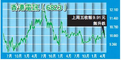 香港電訊有網絡和成本優勢,業務多元化,不必太擔心其業績增長前景,再加上股息率逾6%,相當吸引,瑞信料未來3年股息年複合增長4.1%,予目標價12元,上周五收報9.91元。