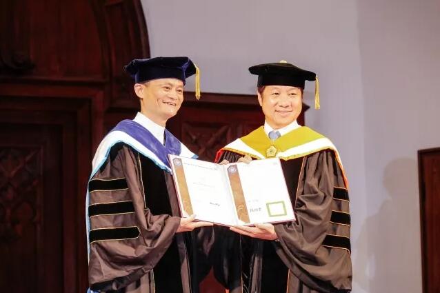 早在2013年,马云就拿到了来自香港科技大学颁发的工商管理学荣誉博士,以表彰他在互联网零售业所取得的成就,以及对社会做出的贡献。