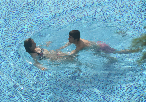 有市民选择在游泳池消暑。