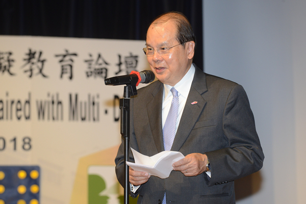 張建宗在視障兼多重障礙教育論壇致辭。