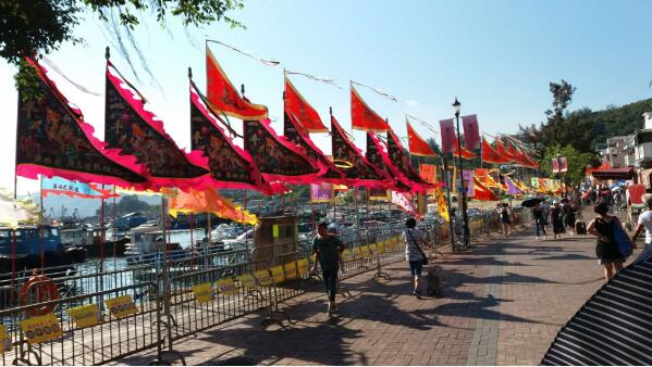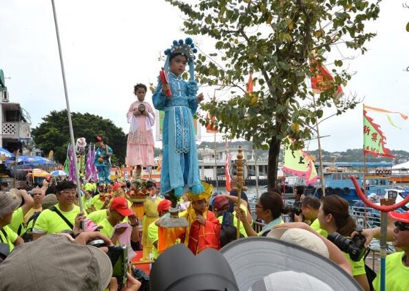 长洲太平清醮下午举行飘色巡游,晚上有抢包山比赛,不少人趁假期入长洲观赏。新渡轮表示,今早8时起增加由中环开往长洲的航班数目逾一倍,由上午8时至中午12时,约有1.08万人次由中环往长洲,按年下跌26%。