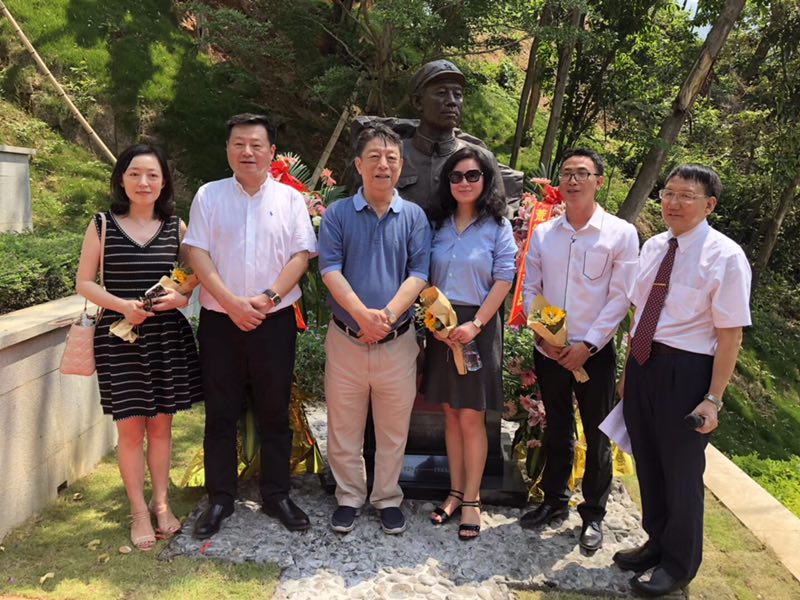 王进禄的三个子女和谷牧之子刘历远(左三)、基建工程纪念园负责人王超(右二)、老兵代表杨洪祥(右一)