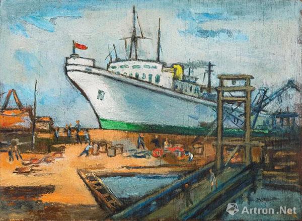 LOT 2009 关良 海港晨曲 1960 年代 木板油画 32.8×45 cm