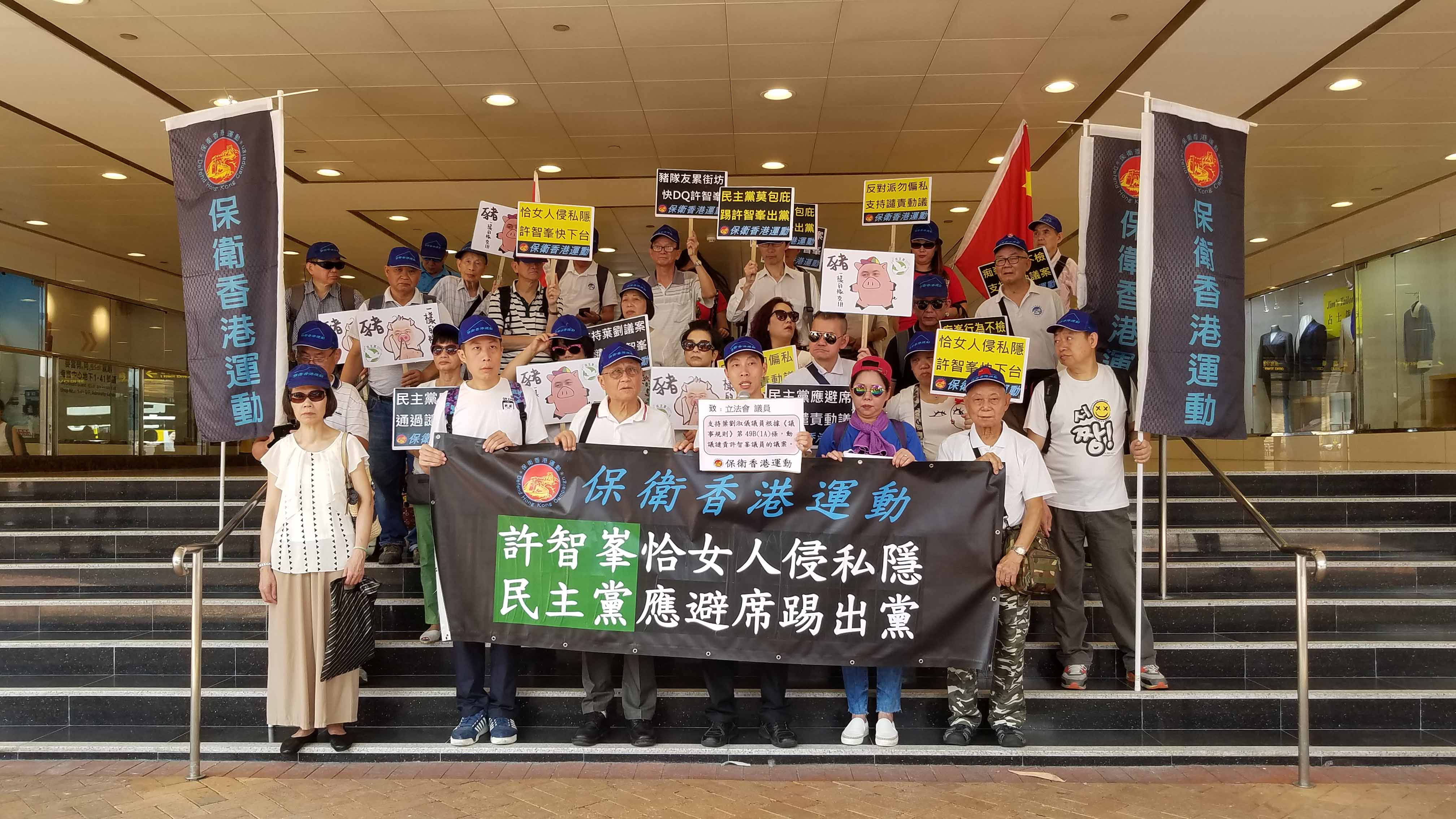 此外,「保衛香港運動」約30名成員亦由金鐘海富中心遊行至立法會,要求褫奪許智峯的議席。他們指出,許智峯強搶手機事件引起社會各界的猛烈抨擊,又批評他的行為已逾越法治道德底線,要求民主黨順應民意,將許智峯踢出黨。