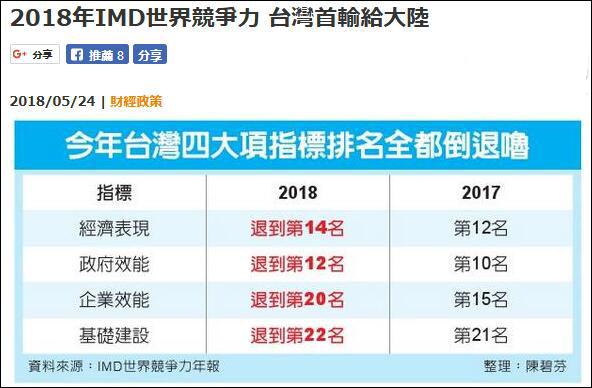 其实,从去年起,台湾在IMD公布的各项排名中已优势不再。