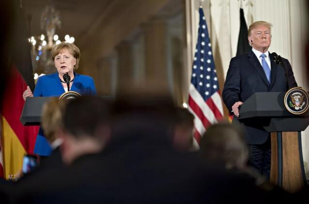 △2018年4月27日,美国总统特朗普与德国总理默克尔在白宫会晤,并举行联合新闻发布会。(图/视觉中国)