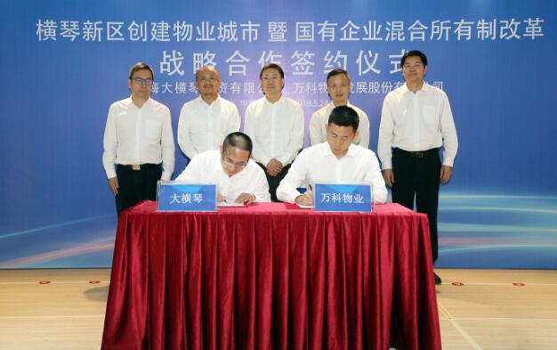 【香港商报网讯】记者陆绍龙报道:5月24日,珠海大横琴投资有限公司与万科物业发展股份有限公司正式签署战略合作框架协议,双方携手推动“物业城市”管理理念的落地。同时将以珠海大横琴城市公共资源经营管理有限公司(简称大横琴城资)为合作载体进行混合所有制改革(简称混改),这标志着横琴新区深化国有企业改革、创建全国“物业城市”试点工作正式启动。