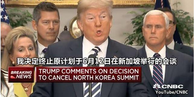 特朗普在演讲中说,“首先我想要说,针对近日朝鲜的所发出的声明,我决定终止原计划于6月12日在新加坡举行的会谈。有很多事都可能发生,很可能摆在我们眼前的是一次很大的机会。我认为对朝鲜而言,这是一次巨大的挫折。对世界而言,这也是一次挫折。”