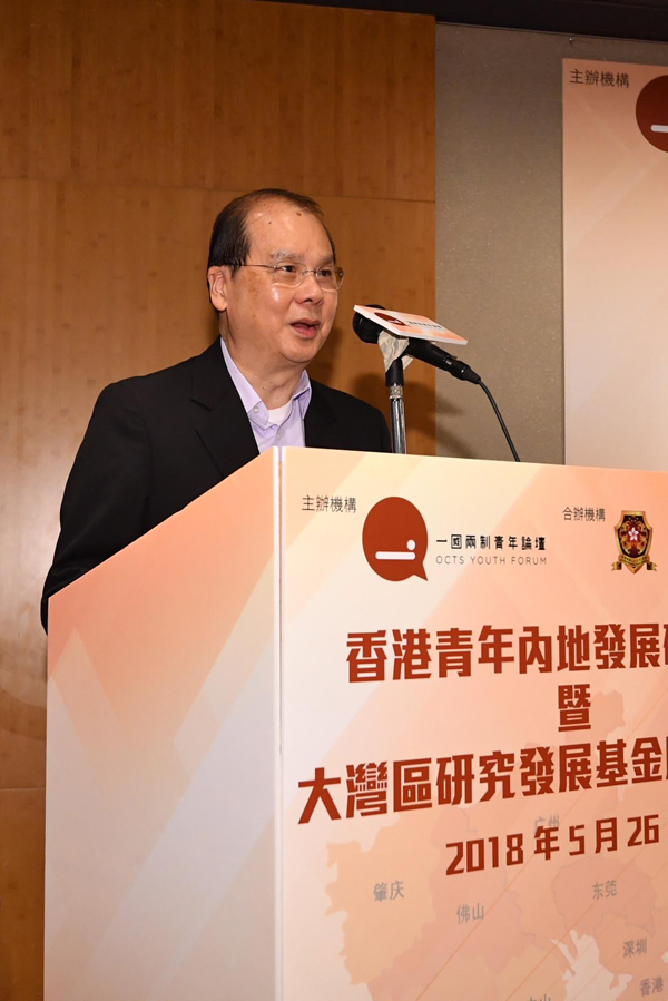 張建宗致辭時表示,青年是香港的未來,特區政府一直致力為香港青年拓展多元發展機遇,協助他們向上流動、實踐理想,而粵港澳大灣區建設將為香港的經濟發展帶來新的增長點,正可為青年人提供新的機會、新的跑道、新的選擇。