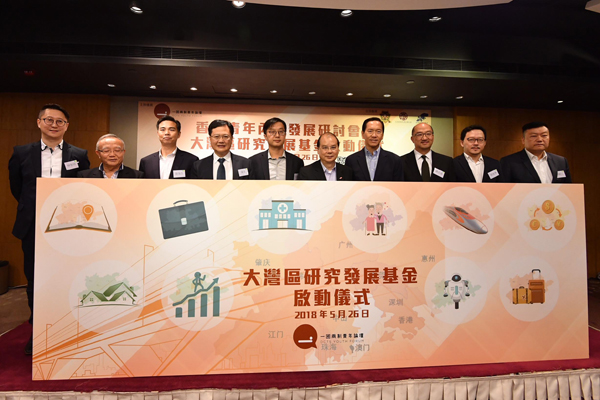 香港青年內地發展研討會暨「大灣區研究發展基金」啟動儀式昨日下午在灣仔舉行,邀請了政務司司長張建宗、中聯辦副主任陳冬、國務院港澳辦交流司副司長陸海生、行政會議召集人陳智思等擔任主禮嘉賓。