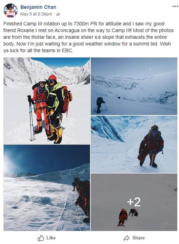 年僅19歲的本港青年陳家希(Benjamin Chan),本月21日成功登上海拔8848米珠穆朗瑪峰後,於今日早上從尼泊爾凱旋返港,母親及兄長到機場迎接。他甫一落機即表示想「食叉燒飯」及盡力休息,為下一個登頂旅程作準備。