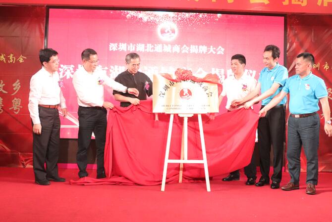 深圳市社会组织总会联合党委副书记张武波、深圳市社会组织管理局副局长孙景明、湖北省通城县政主席协汤会礼、深圳市湖北通城商会会长张明亮、深圳市湖北通城商会执行会长黎云峰等,为深圳市湖北通城商会揭牌