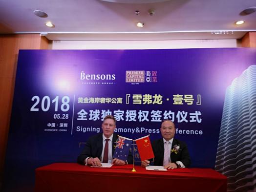 【香港商报网讯】记者黄凤鸣报道:5月28日下午,国内著名海外房产投资机构美亚置业集团,联合澳大利亚本土顶级开发商Bensons博盛地产集团就黄金海岸一线海景奢华公寓CHEVRON ONE雪弗龙•壹号项目举行全球独家签约发布会,在深圳马哥孛罗好日子酒店召开。