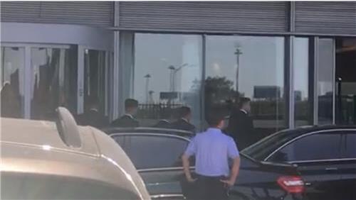 金英哲一行抵达北京首都机场。(韩联社)