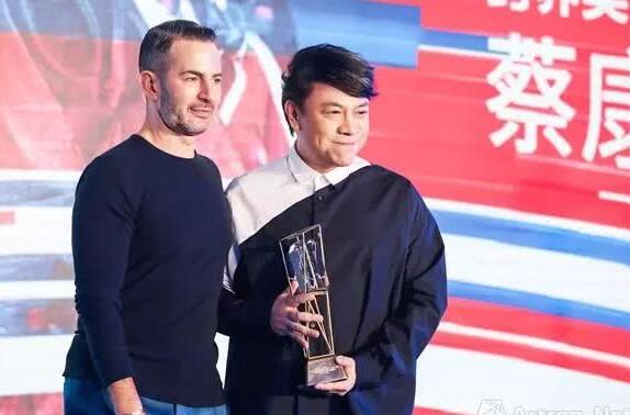▲設計師Marc Jacobs(左)為“2018時尚數字大獎”年度最具數字影響力跨界美學倡導者蔡康永(右)頒獎