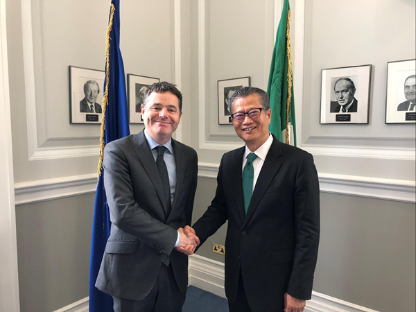 他又與愛爾蘭財政、公共支出和改革部長巴斯卡。多諾霍會晤,討論環球和歐洲地區經濟前景。雙方期待進一步推進兩地在金融服務、貿易等方面的合作。