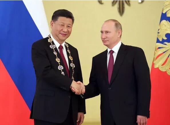 △2017年7月4日,国家主席习近平在莫斯科克里姆林宫同俄罗斯总统普京举行会谈。会谈后,普京向习近平授予俄罗斯国家最高勋章“圣安德烈”勋章。