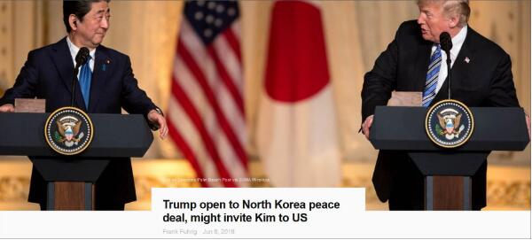特朗普还表示,在下周二(12日)的峰会上,达成结束朝鲜战争的和平协议是可能的,特朗普强调这将是“第一步”。