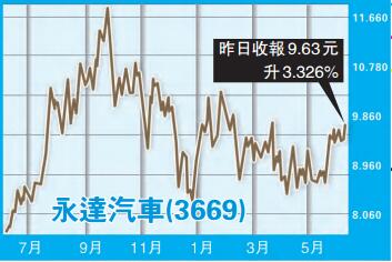 個股方面,筆者推介永達汽車(3669),因其可直接受惠豪華車銷量增長,同時售後服務及汽車金融發展前景廣闊,值得關注。截至2018年3月底首季業績,集團綜合收入按年上升18.5%至126.94億元(人民幣,下同),綜合毛利率上升0.36個百分點至11.99%,純利按年上升30.4%至3.92億元。據全國乘聯會數據,今年4月乘用車銷量同比增長9.6%至181.2萬輛,其中豪華車銷量增長17%,以1至4月計,豪華車銷量更增長22.3%至67.2萬輛。今年7月份起內地進口汽車關稅將降低至15%,利好豪華車銷量,集團可大為受惠。