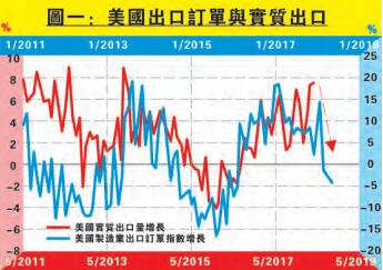 先參考較為直接反映出口的訂單走勢。圖一顯示,其實美國實質出口在金融海嘯後大部分時間處於增長,可見美國貿易收支平衡轉差應受其他因素影響,包括進口增長比出口過急、美元匯價偏強等等,加上美國與盟友的貿易條件在過往多年無出現明顯變化,華府近月歸咎美國貿易轉差與其他國家的貿易條件有關似乎有點牽強。