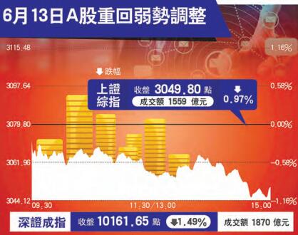 昨日內地股市將前一交易日的升幅悉數回吐,上證綜指大跌30個點或0.97%,收報3049點,預示着上證綜指3000點關威脅還沒有化解的跡象。而兩市場成交額又萎縮到3500億元以下,僅3428億元,仍然維繫着今年的超地量水平。當天內地股市最搶眼的有兩隻個股,一是中興通訊(000063.SZ、0763.HK),二是工業富聯(601138.SH)。