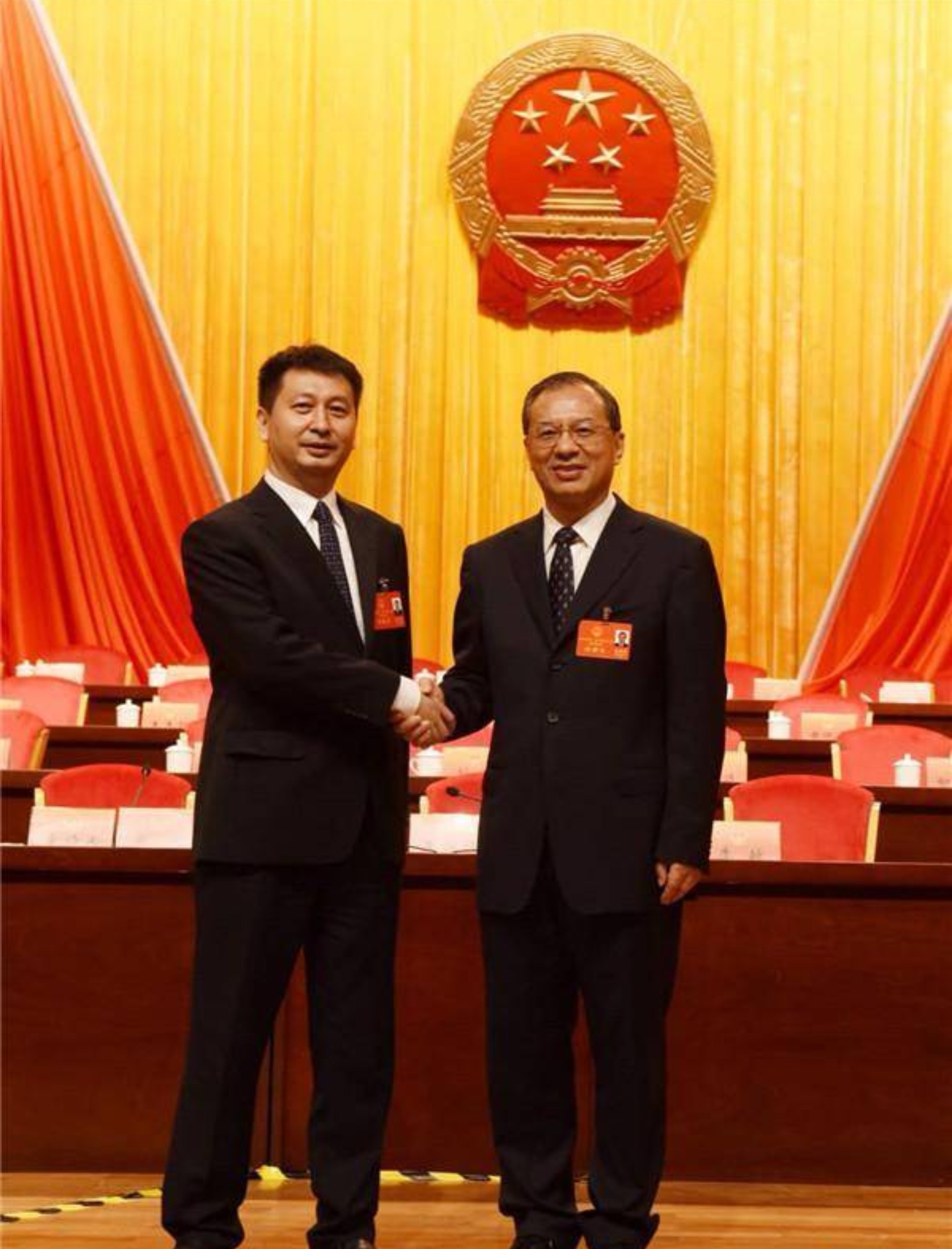 会后,李贻伟(右)与刘吉握手。