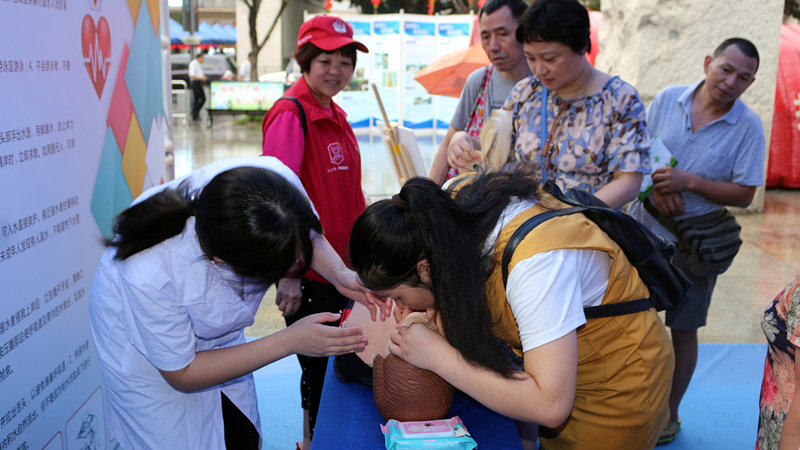 最值得一提的是,罗湖区安委办在活动现场特别设立了安全互动体验活动,共有溺水急救心肺复苏实操、3D火灾隐患查找游戏、模拟火灾逃生通道、燃气安全之危险时刻、逃生结绳、灭火器使用等12项体验区域,市民可身临其境般地在真实的体验中学习安全知识与技能。现场发现,在溺水急救心肺复苏实操展区及模拟火灾逃生通道两个体验区,吸引了特别多的市民。市民李先生说:“夏季孩子游泳溺水现象时有发生,学会紧急救助不仅可以自救,更重要的是可以救人。”而一位王小姐在体验完火灾逃生通道后直言:“太真实太震撼了,只有体验过才能认真对待,希望更多的人重视火灾逃生技巧,太重要了。”